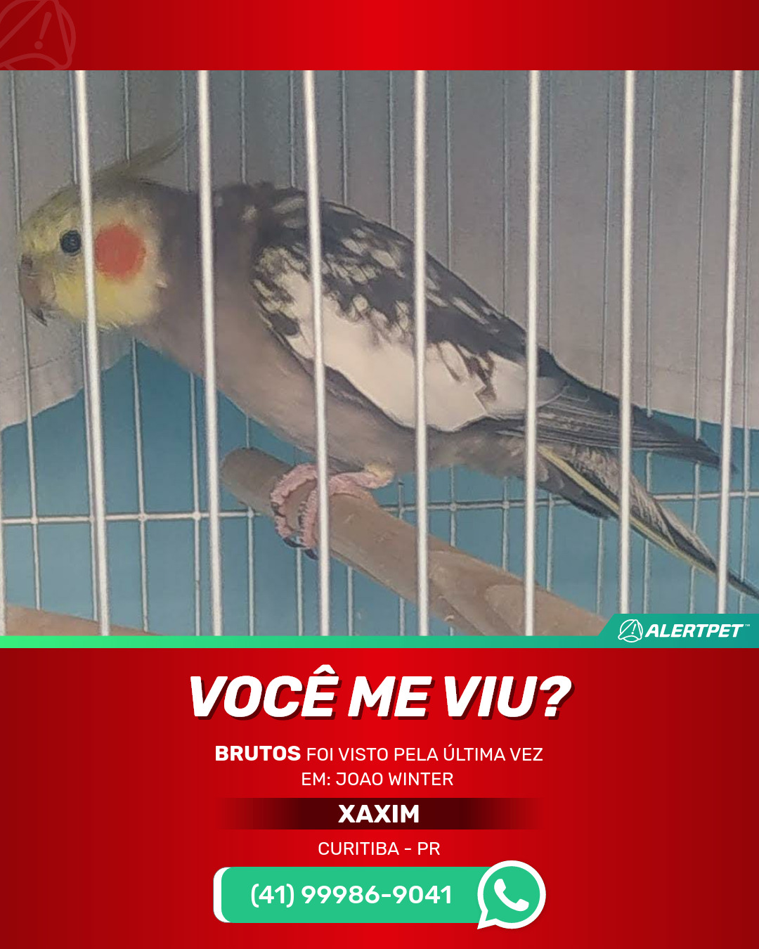 #alertpet #procurase #PássaroDesaparecido #Curitiba #procuramosBrutos