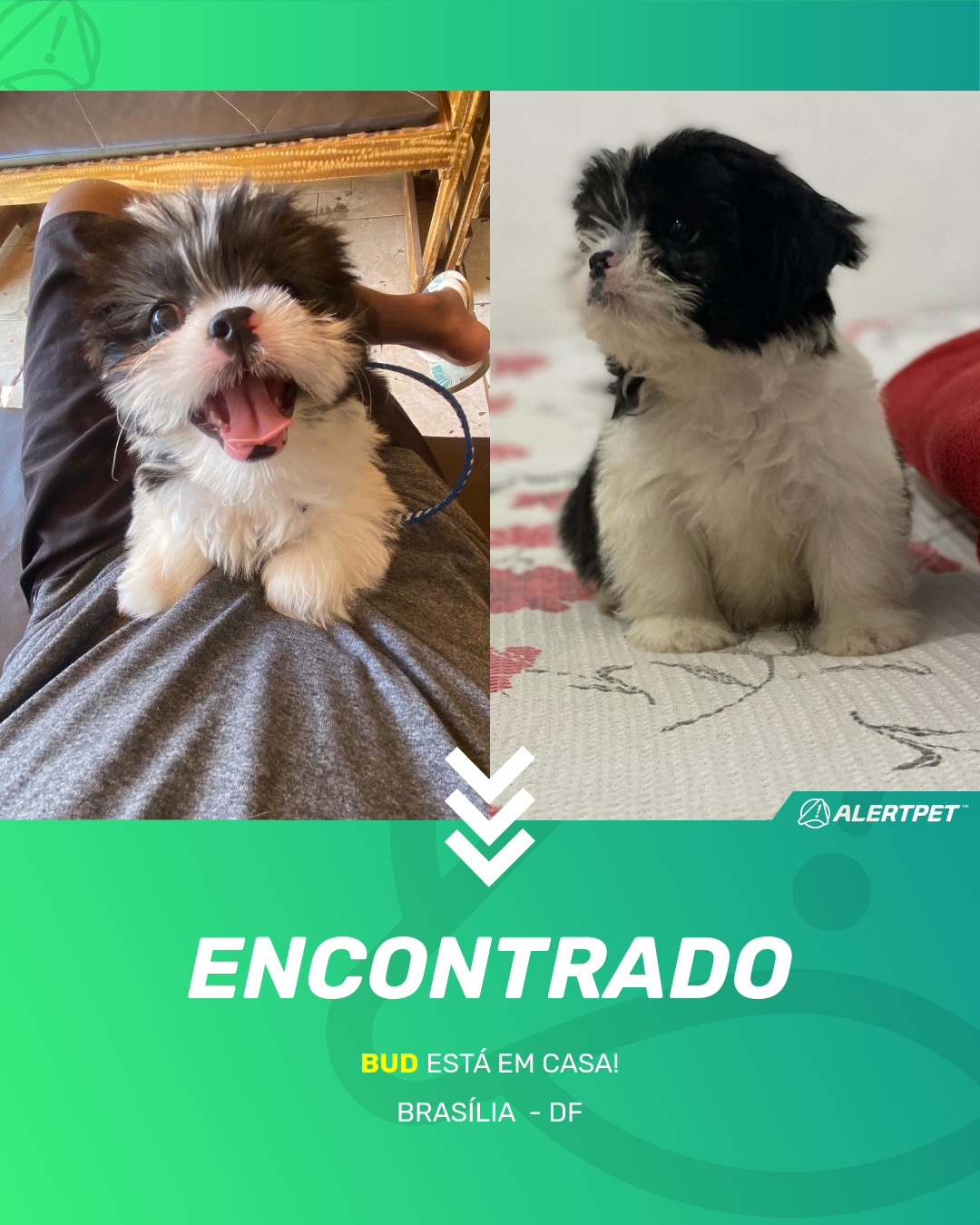 Depois de dois meses a cadelinha foi finalmente localizada graças a um anúncio da AlertPet