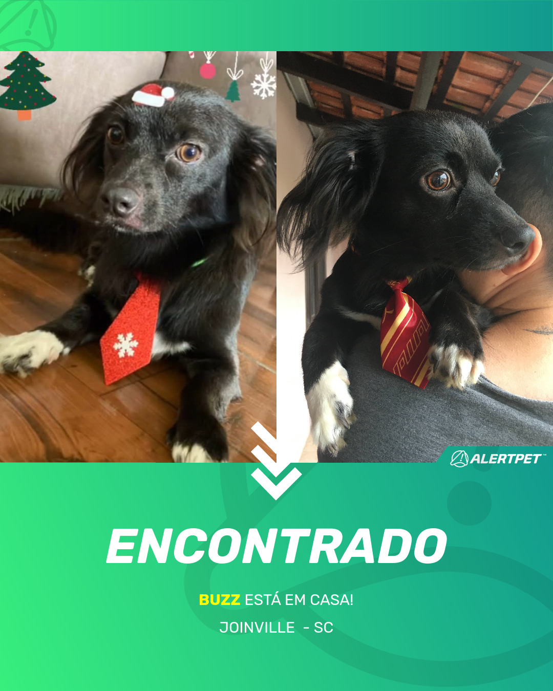 Depois de dois meses a cadelinha foi finalmente localizada graças a um anúncio da AlertPet