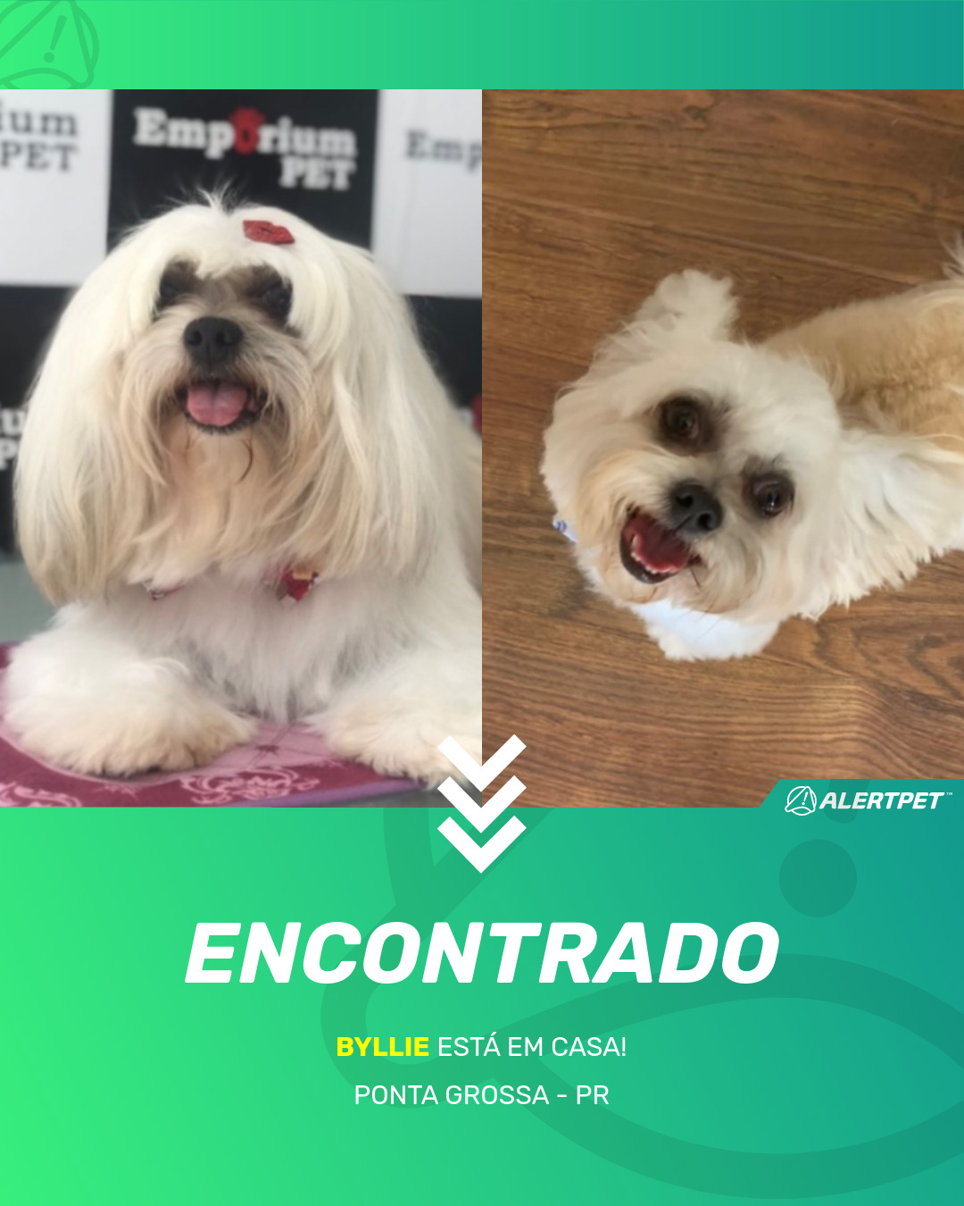 Depois de dois meses a cadelinha foi finalmente localizada graças a um anúncio da AlertPet