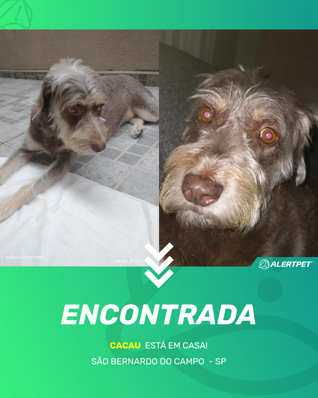Depois de dois meses a cadelinha foi finalmente localizada graças a um anúncio da AlertPet