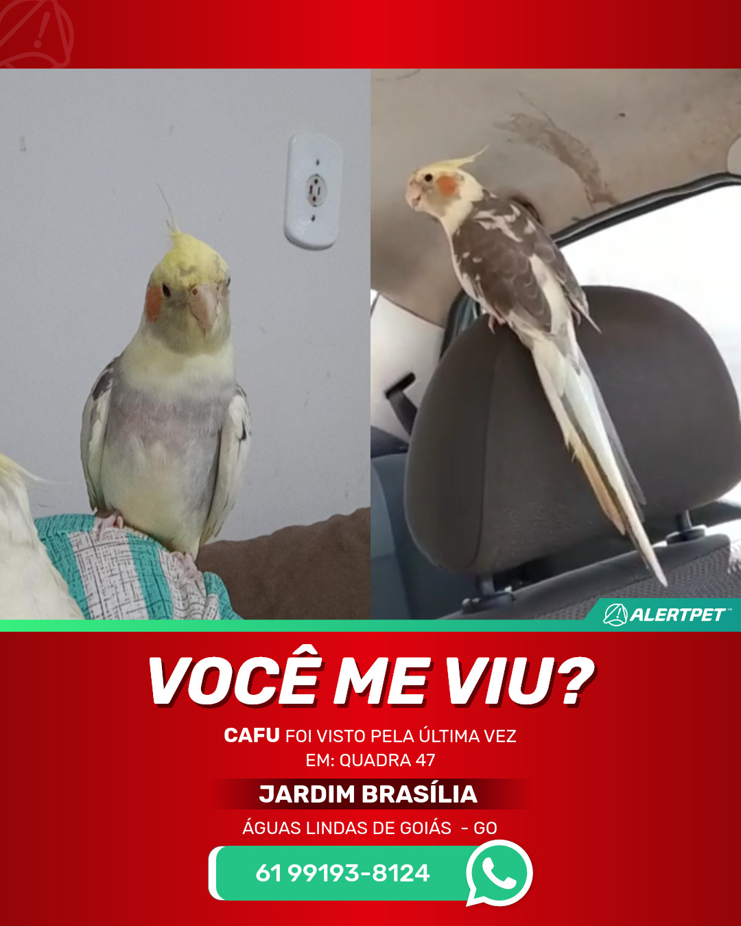 #AlertPet #Procurase #PassaroDesaparecido #AguasLindasDeGoias #ProcuramosCafu
