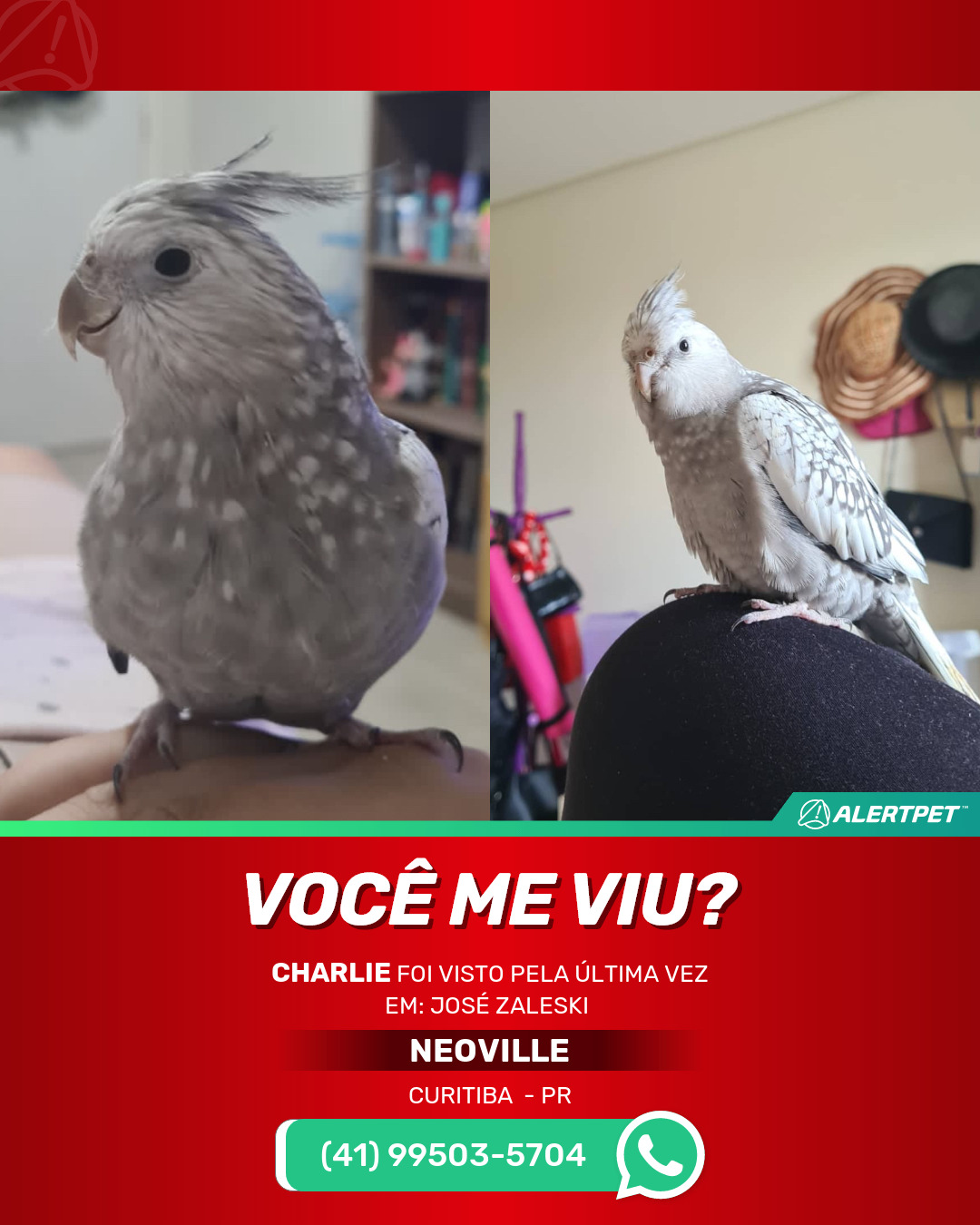 #alertpet #procurase #PássaroDesaparecido #Curitiba #procuramosCharlie