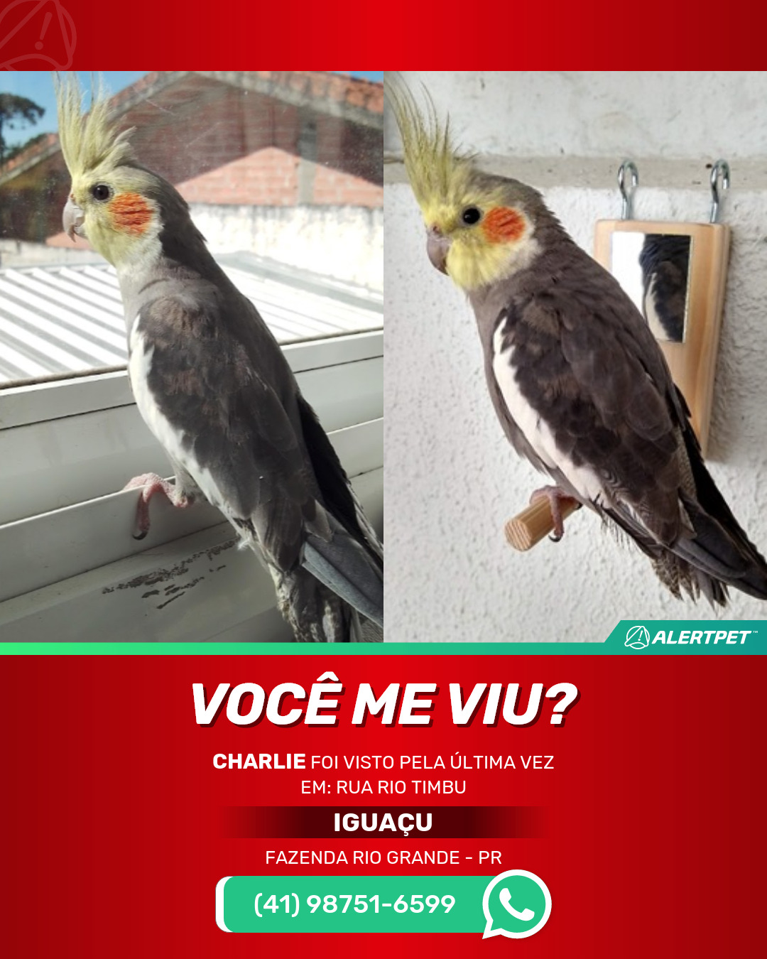 #alertpet #procurase #PássaroDesaparecido #Fazenda Rio Grande #procuramosCharlie