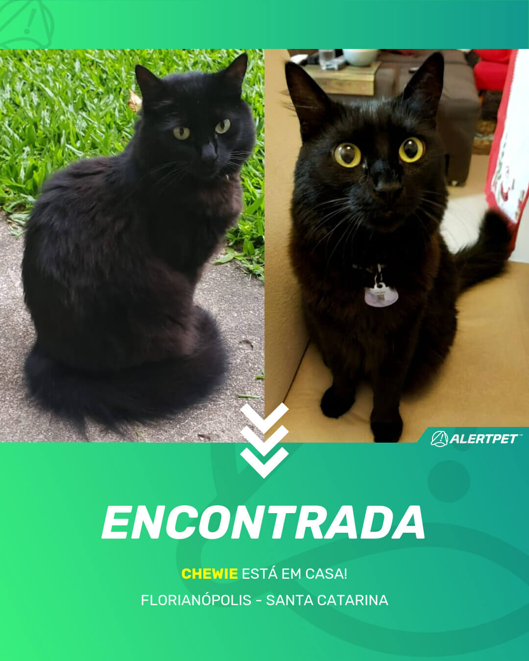 Depois de dois meses a cadelinha foi finalmente localizada graças a um anúncio da AlertPet