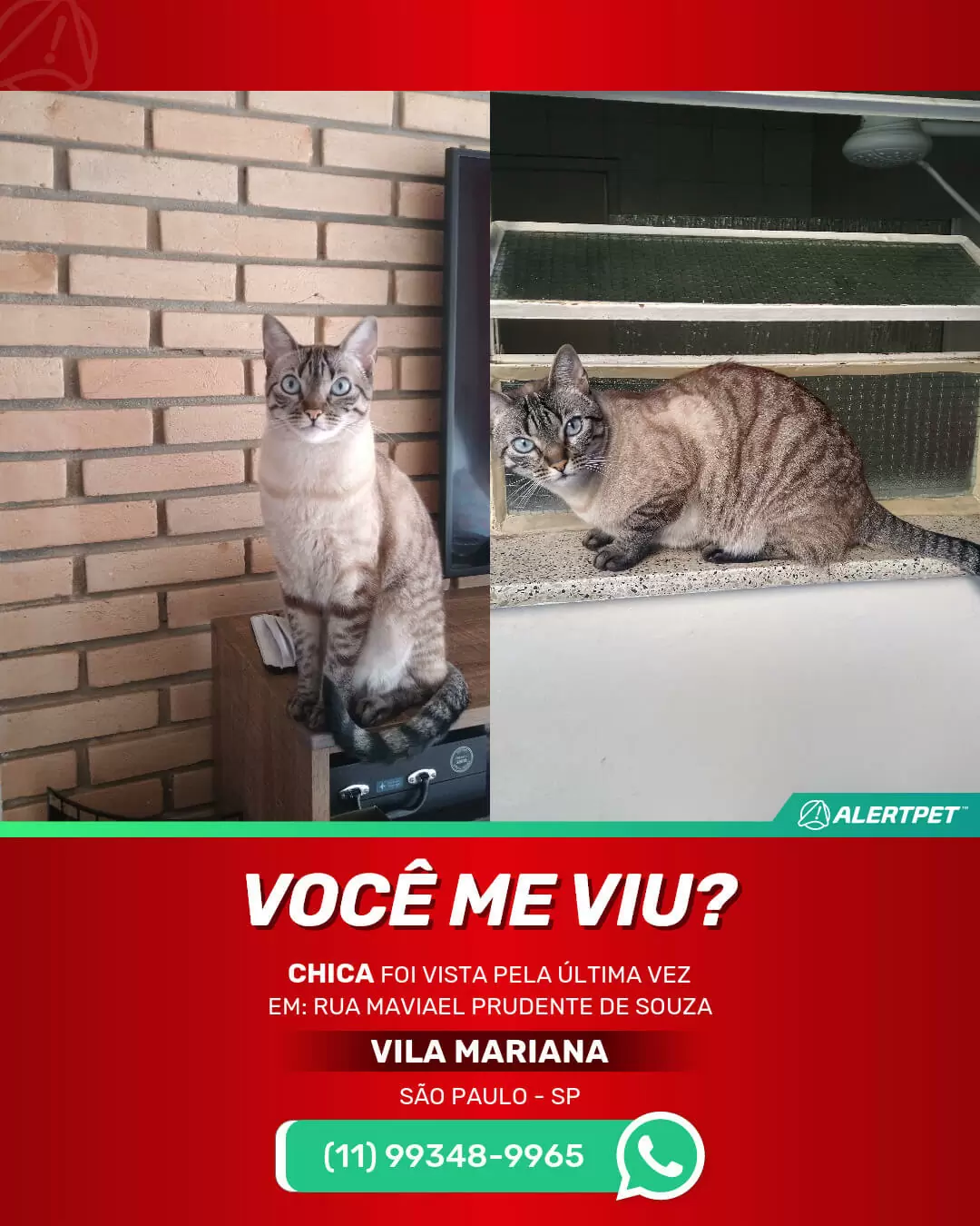 #alertpet #procurase #GatoDesaparecido #São Paulo #procuramosChica