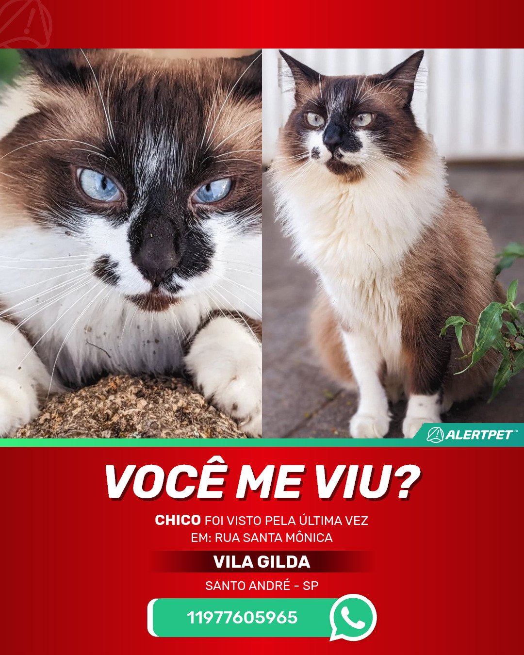 #AlertPet #Procurase #GatoDesaparecido #SantoAndre #ProcuramosChico