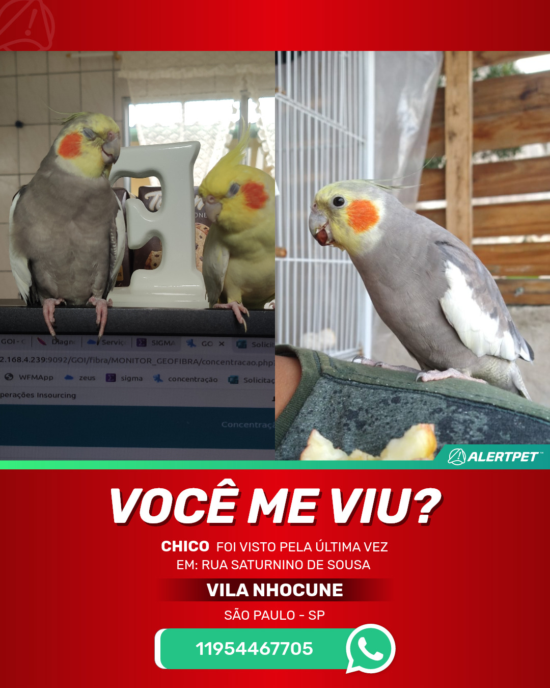 #AlertPet #Procurase #PassaroDesaparecido #SaoPaulo #ProcuramosChico