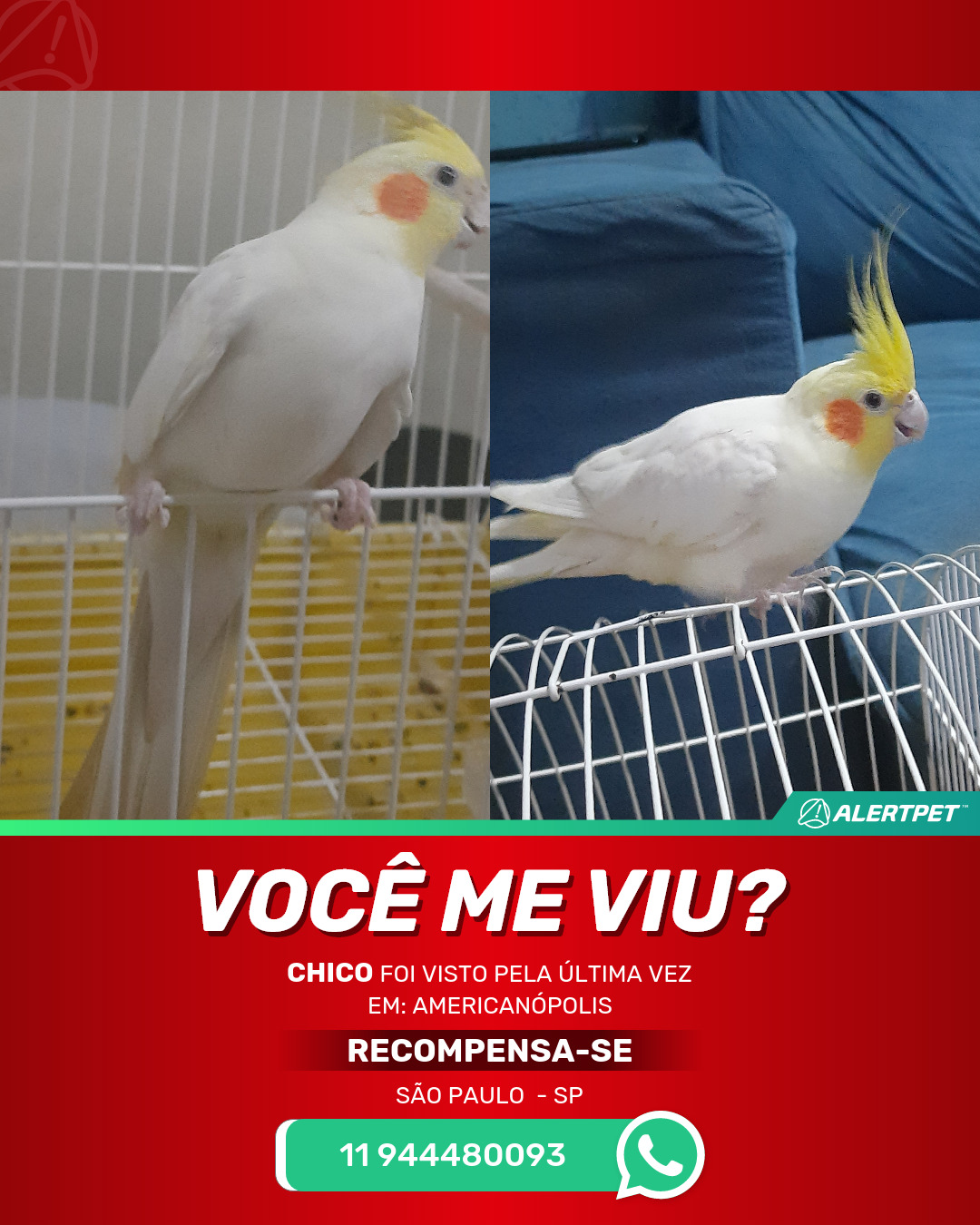 #AlertPet #Procurase #PassaroDesaparecido #SaoPaulo #ProcuramosChico