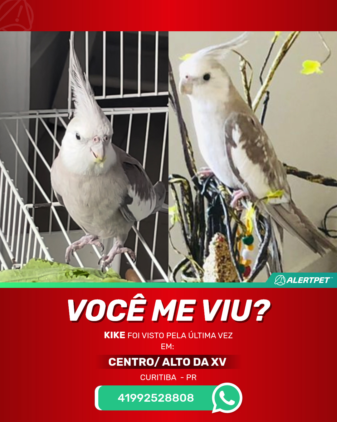 #AlertPet #Procurase #PassaroDesaparecido #Curitiba #ProcuramosKike