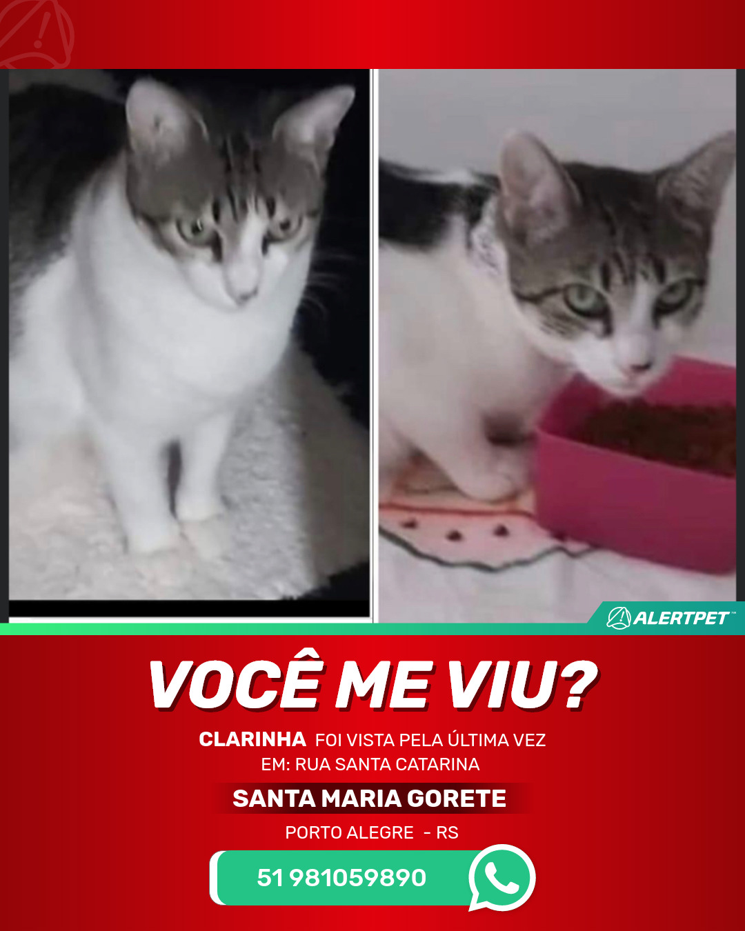 #AlertPet #Procurase #GatoDesaparecido #PortoAlegre #ProcuramosClarinha