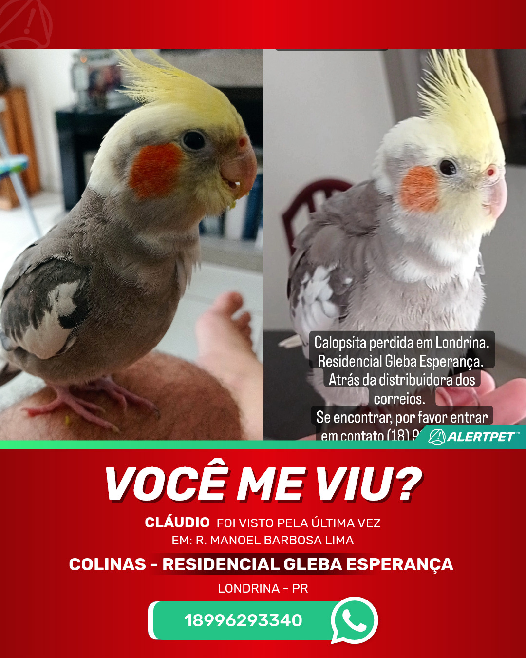 #AlertPet #Procurase #PassaroDesaparecido #Londrina #ProcuramosClaudio