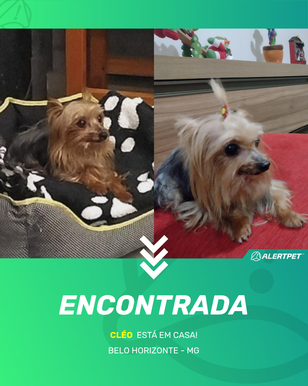 Depois de dois meses a cadelinha foi finalmente localizada graças a um anúncio da AlertPet