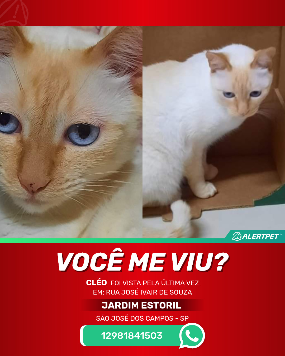#AlertPet #Procurase #GatoDesaparecido #SaoJoseDosCampos #ProcuramosCleo