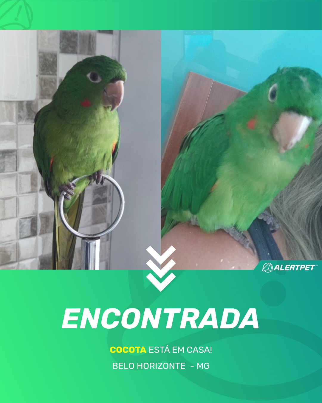 Depois de dois meses a cadelinha foi finalmente localizada graças a um anúncio da AlertPet