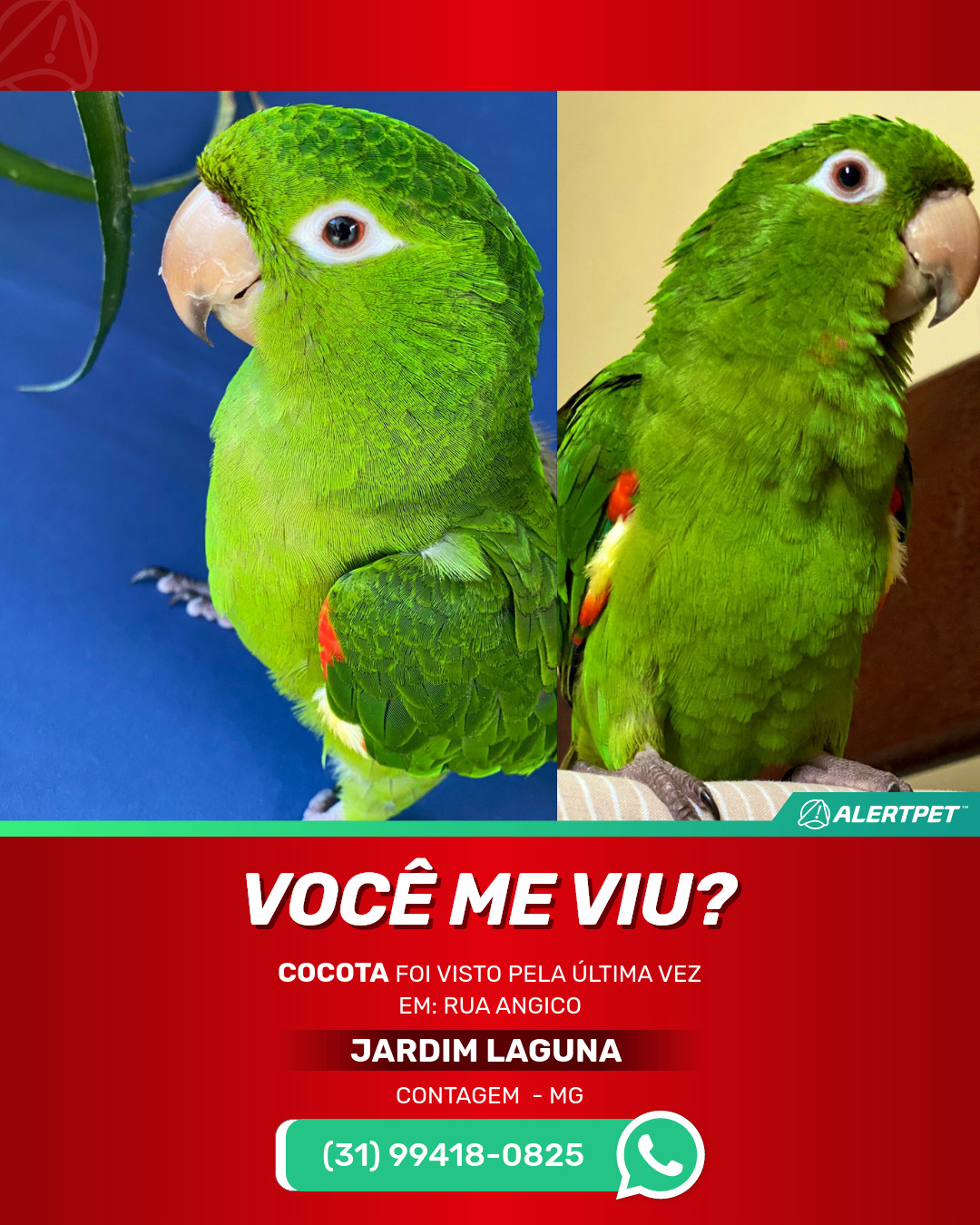#alertpet #procurase #PássaroDesaparecido #Contagem #procuramosCocota