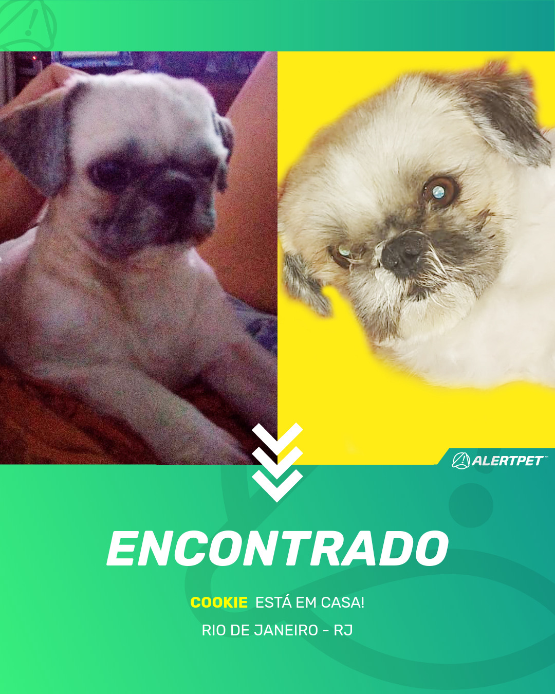 Depois de dois meses a cadelinha foi finalmente localizada graças a um anúncio da AlertPet