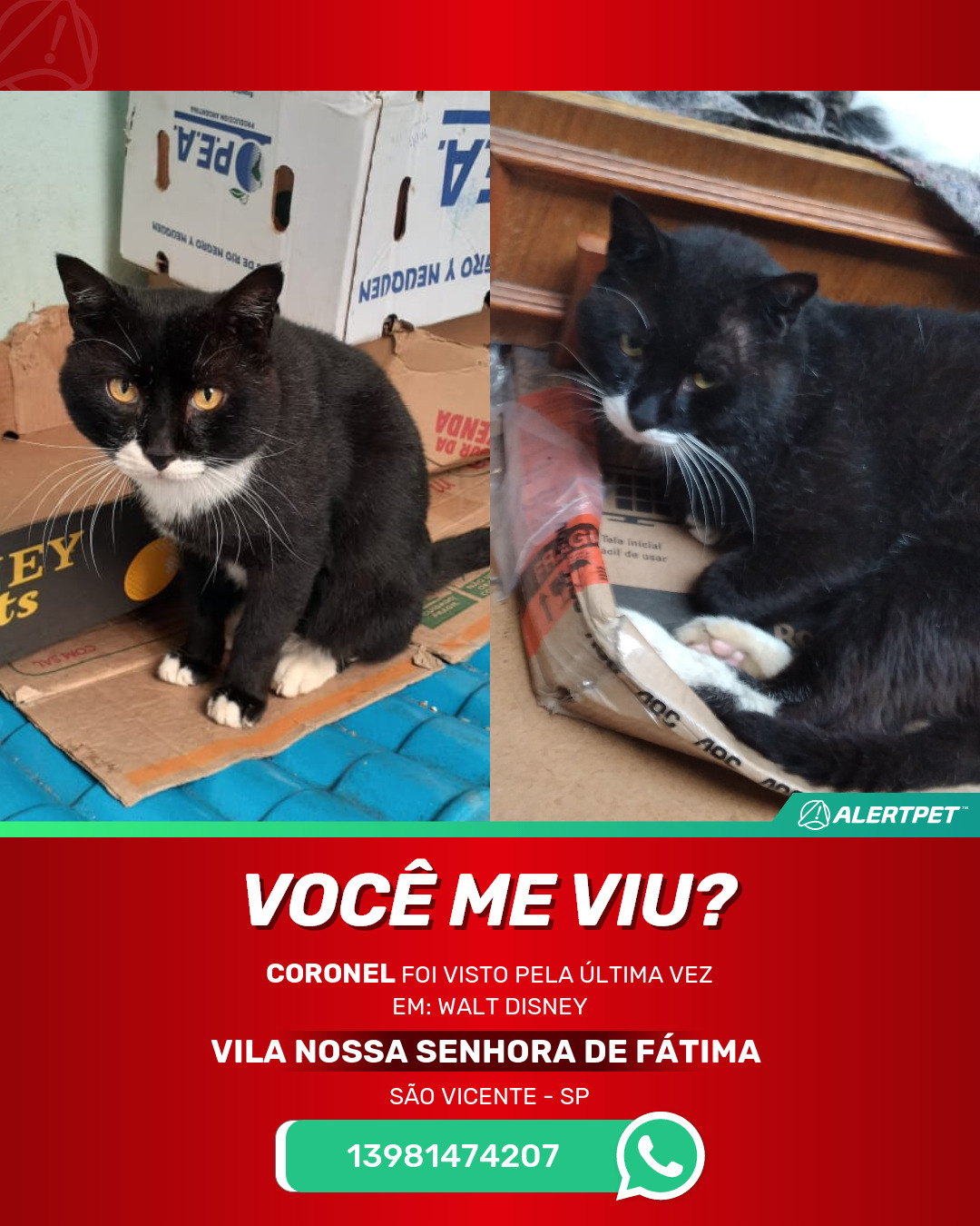 #alertpet #procurase #GatoDesaparecido #São Vicente #procuramosCoronel