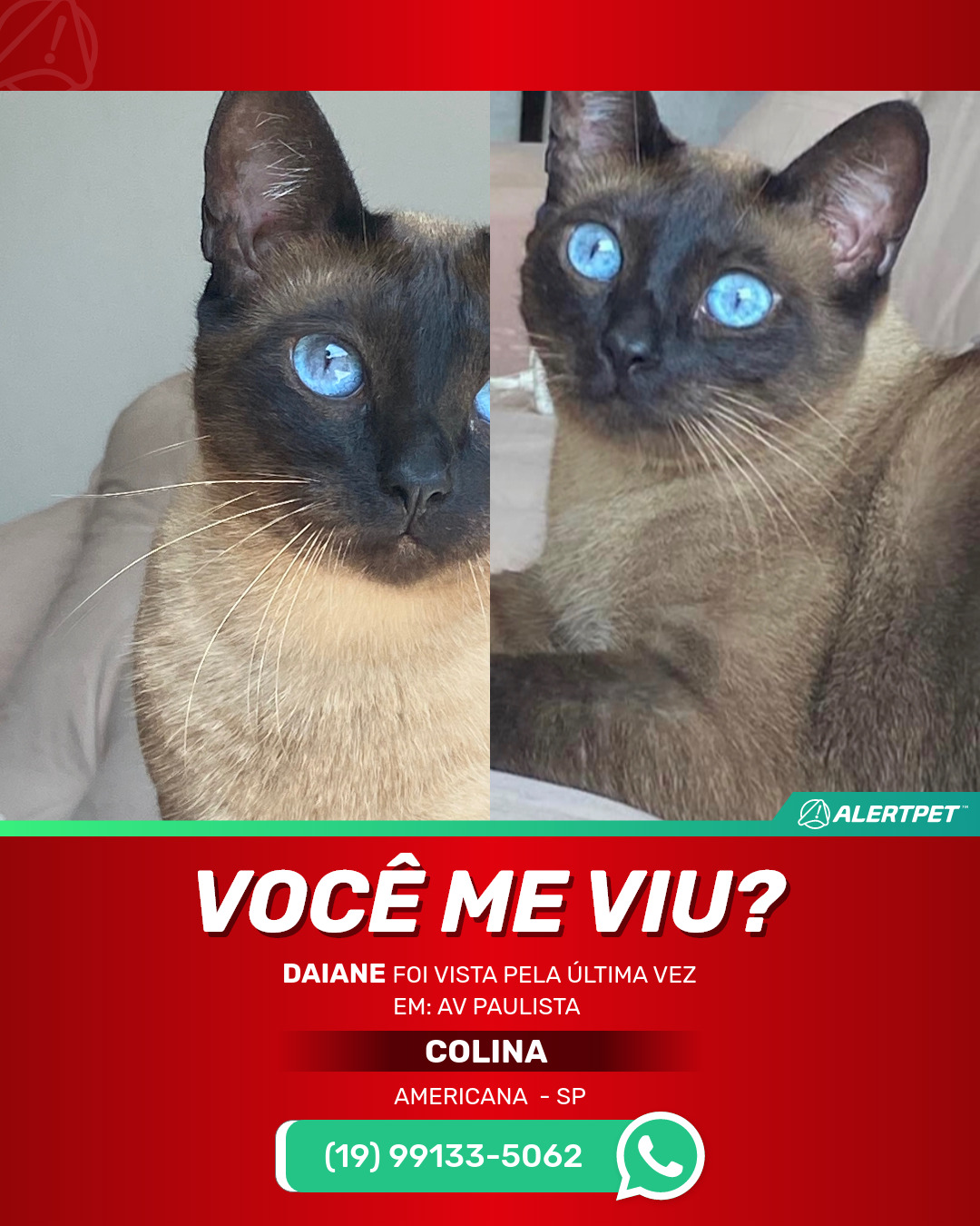 #AlertPet #Procurase #GatoDesaparecido #Americana #ProcuramosDaiane