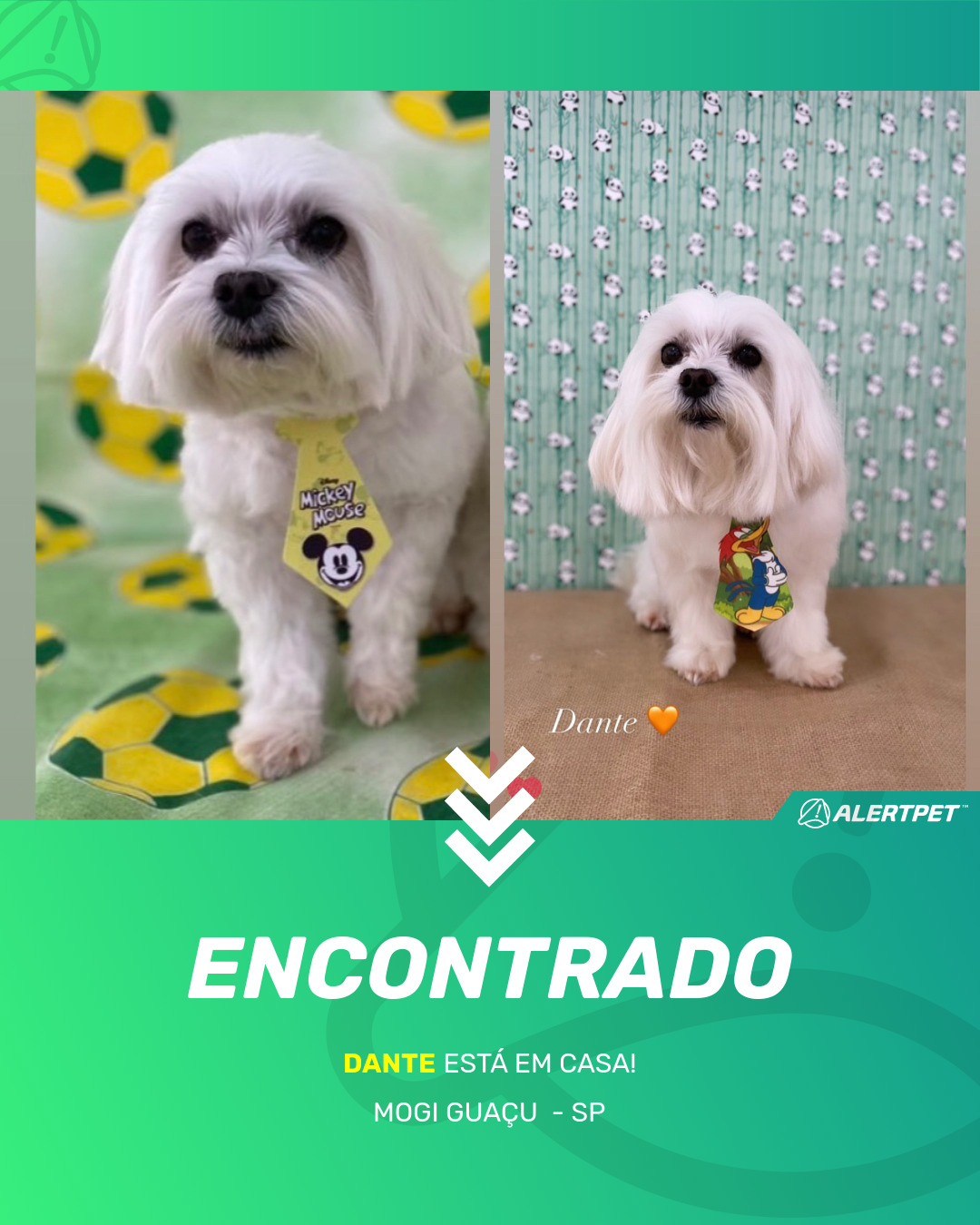 Depois de dois meses a cadelinha foi finalmente localizada graças a um anúncio da AlertPet