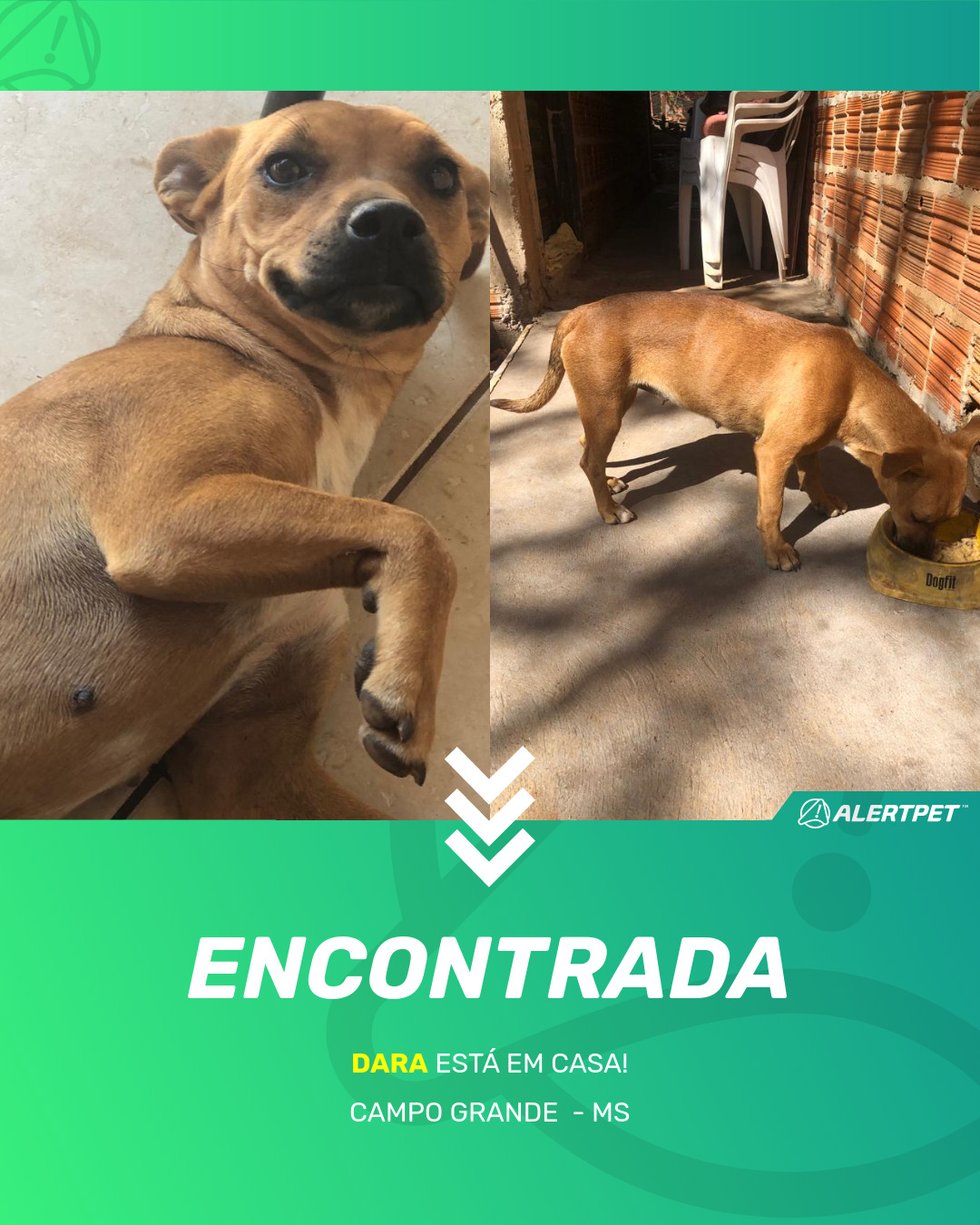 Depois de dois meses a cadelinha foi finalmente localizada graças a um anúncio da AlertPet