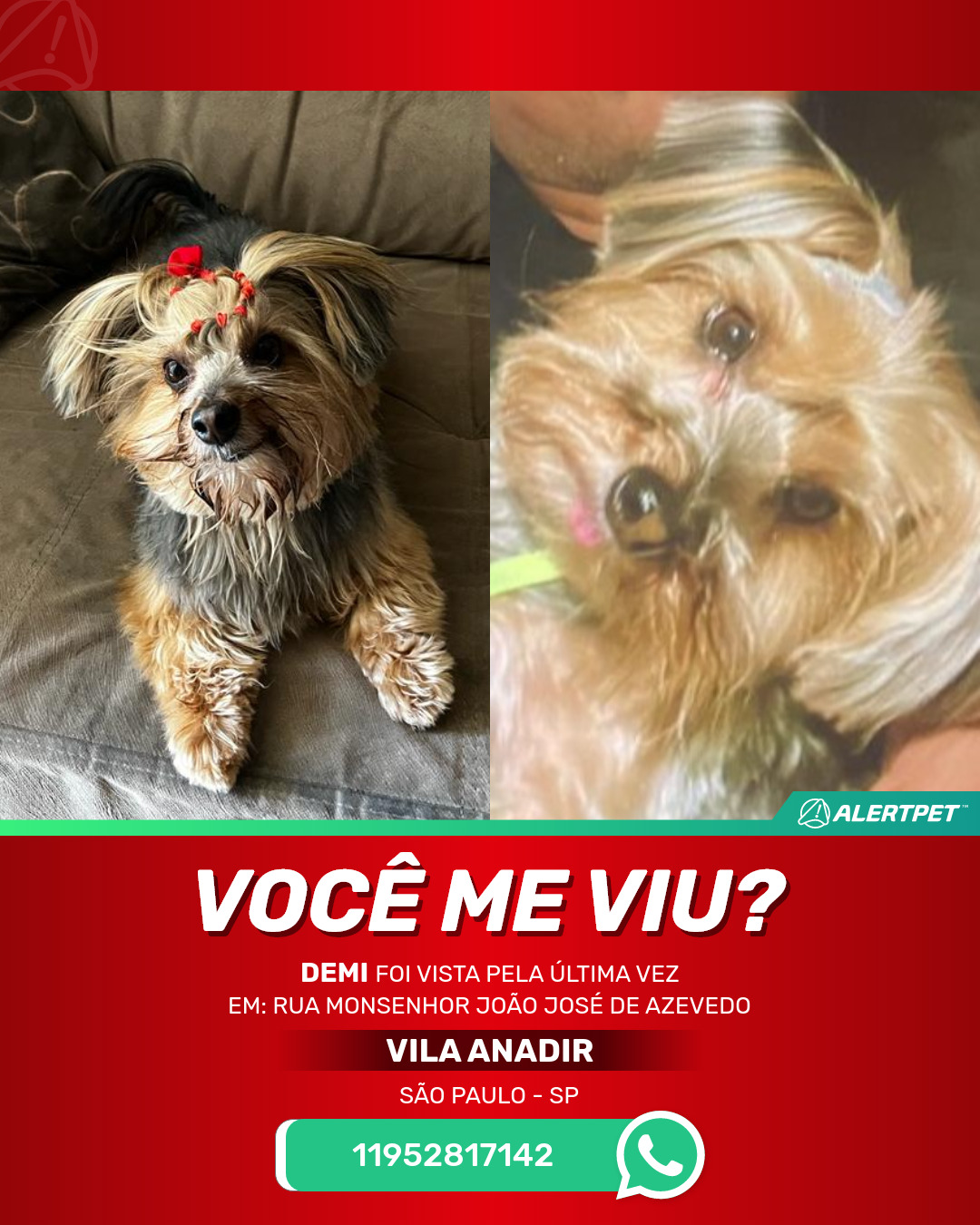 #AlertPet #Procurase #CachorroDesaparecido #SaoPaulo #ProcuramosDemi