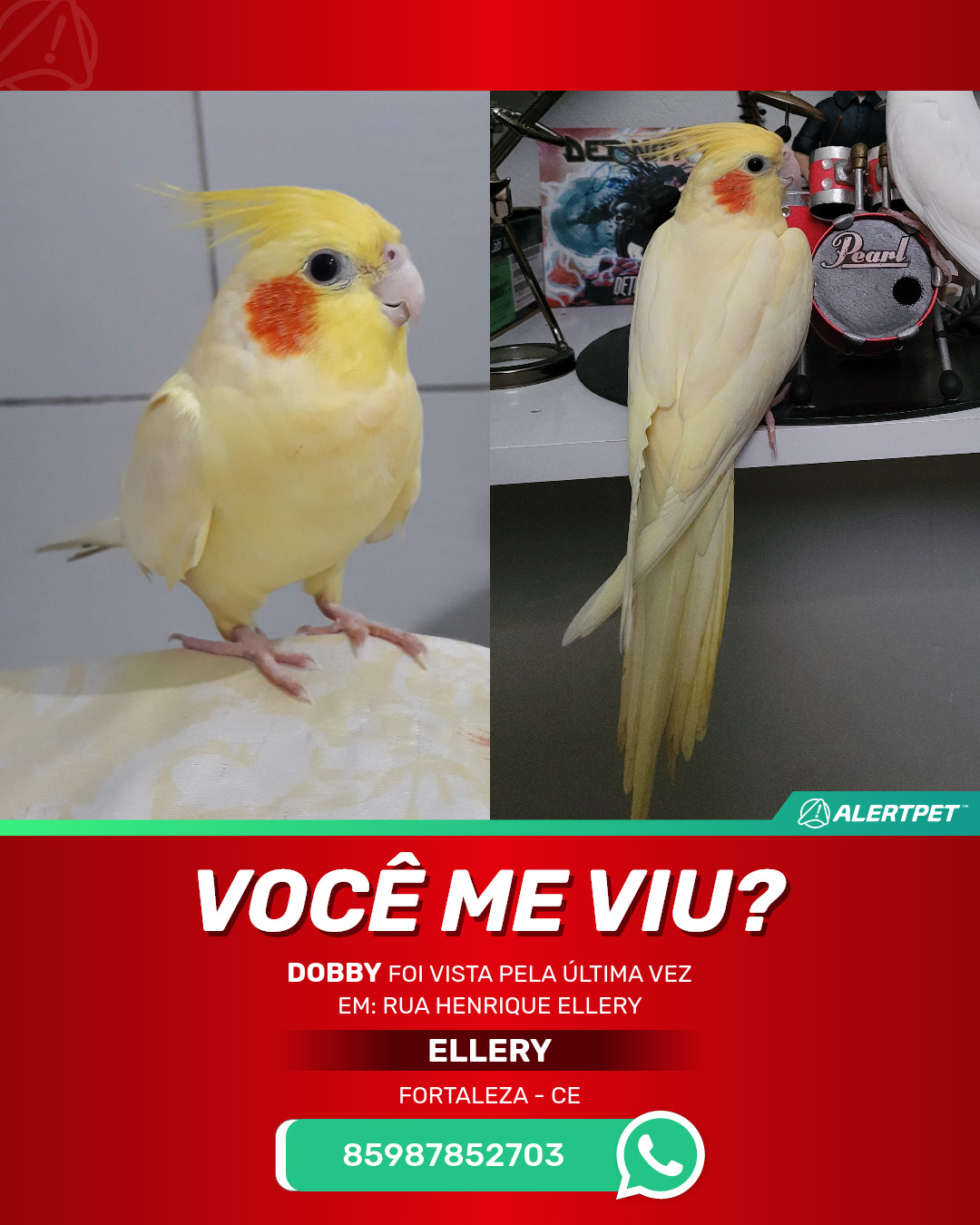 #AlertPet #Procurase #PassaroDesaparecido #Fortaleza #ProcuramosDobby