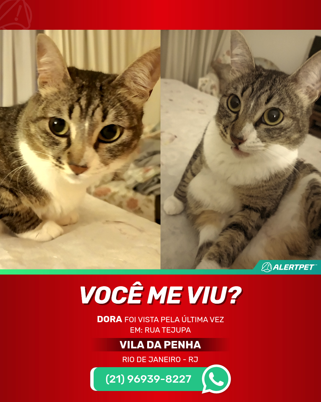 #alertpet #procurase #GatoDesaparecido #Rio de Janeiro #procuramosDora
