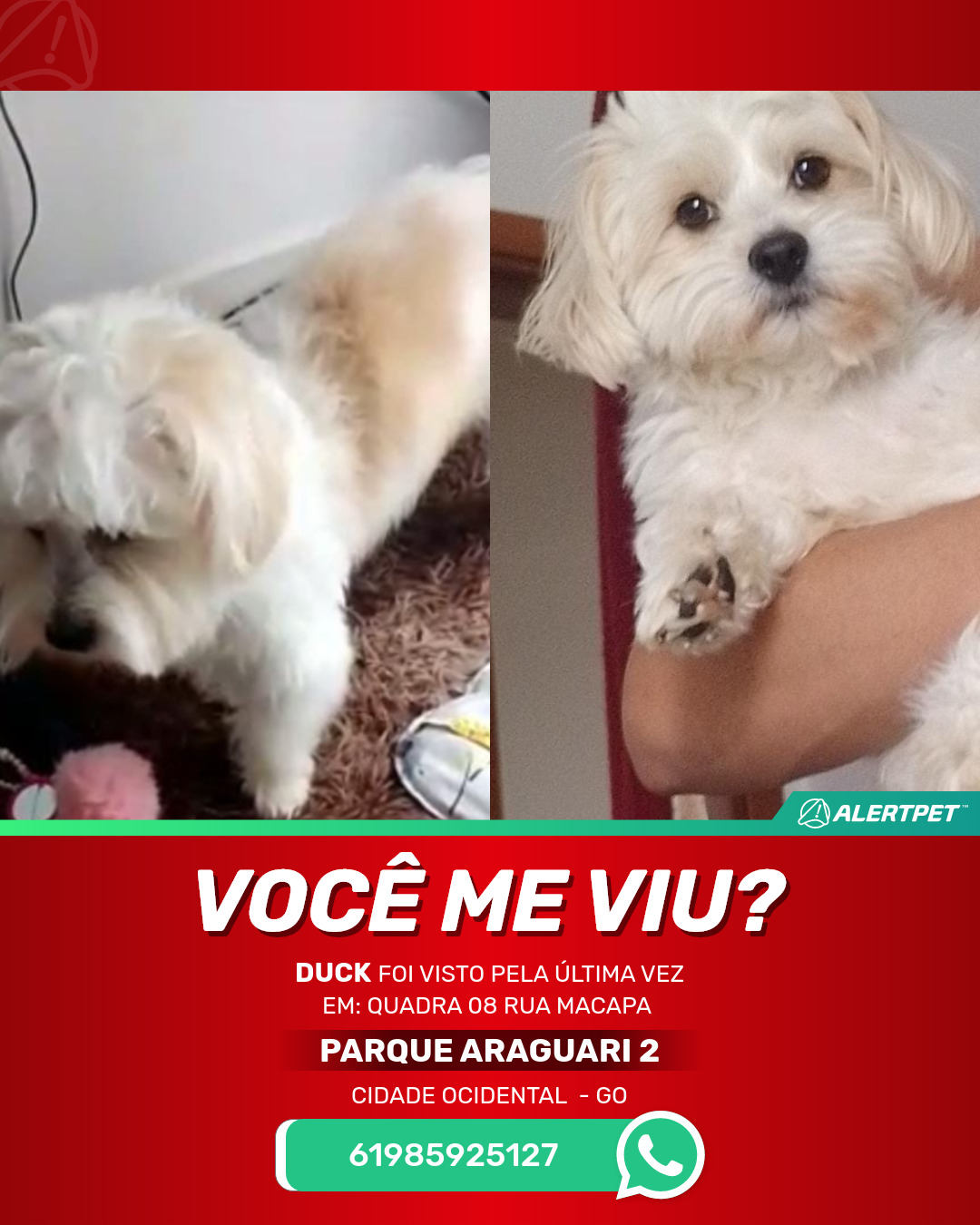 #AlertPet #Procurase #CachorroDesaparecido #CidadeOcidental #ProcuramosDuck