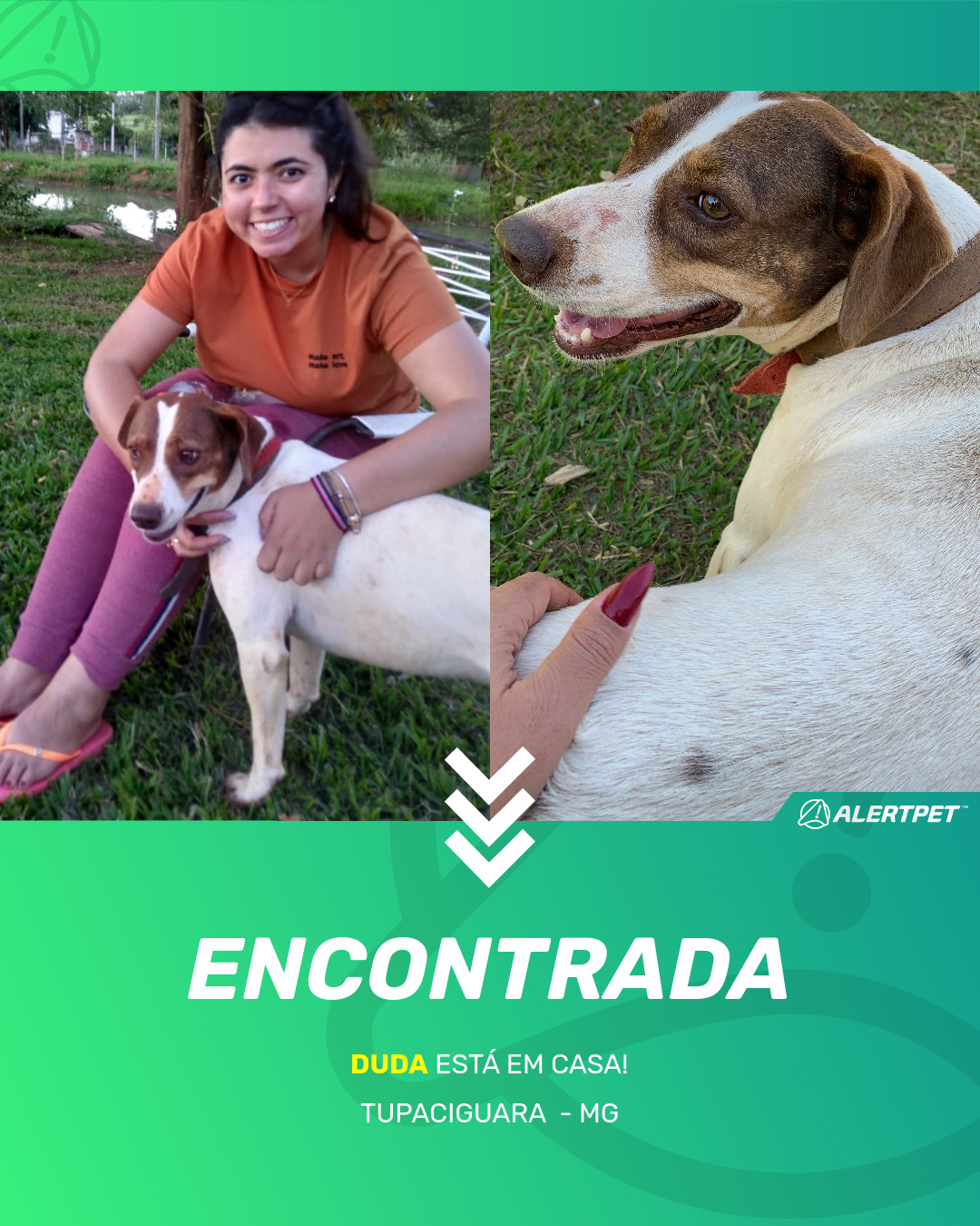 Depois de dois meses a cadelinha foi finalmente localizada graças a um anúncio da AlertPet