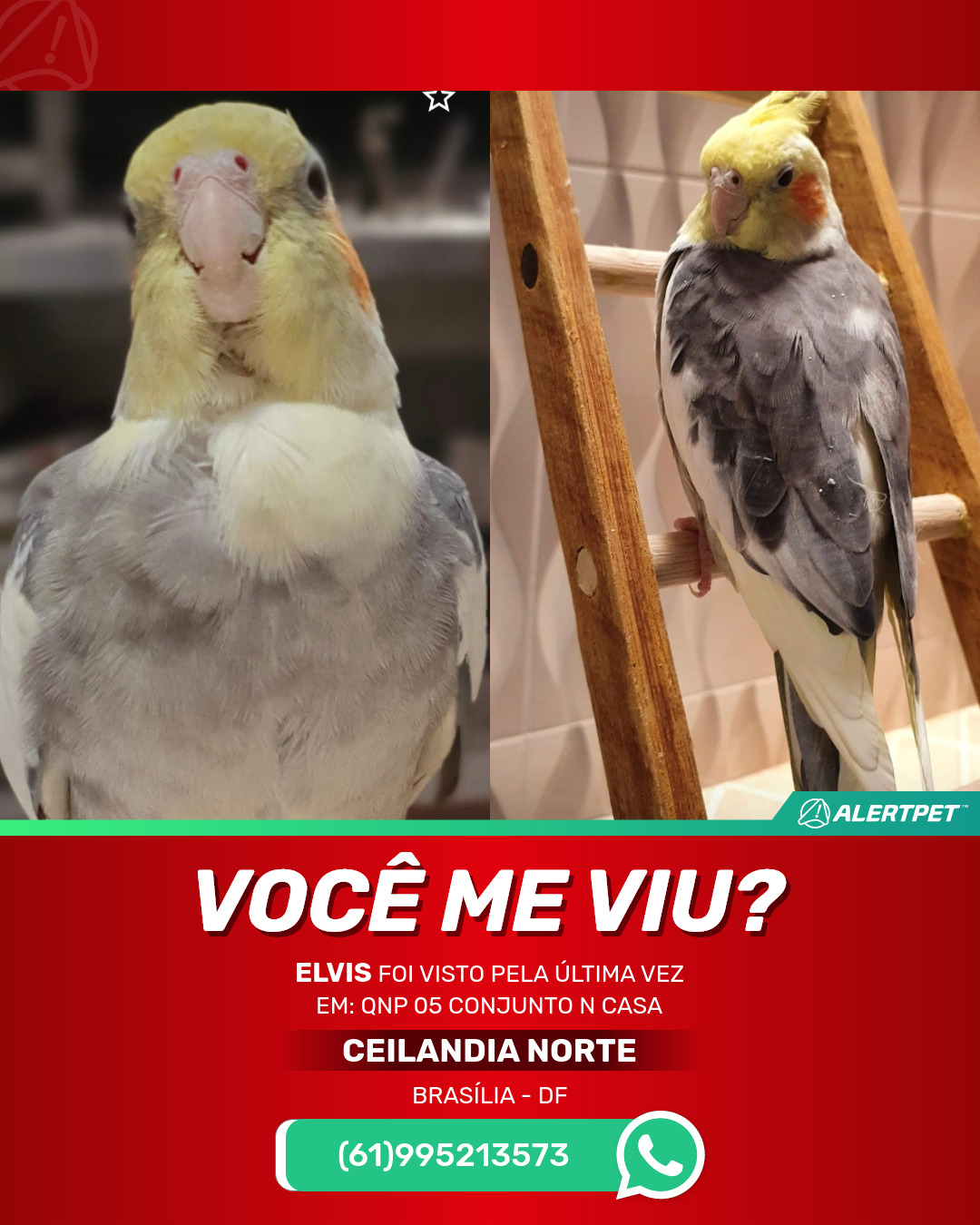 #AlertPet #Procurase #PassaroDesaparecido #Brasilia #ProcuramosElvis