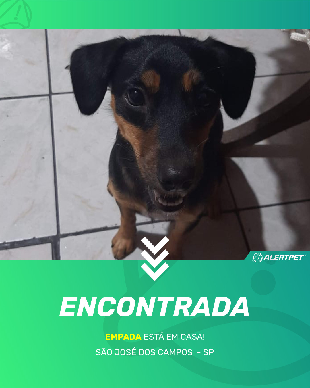 Depois de dois meses a cadelinha foi finalmente localizada graças a um anúncio da AlertPet