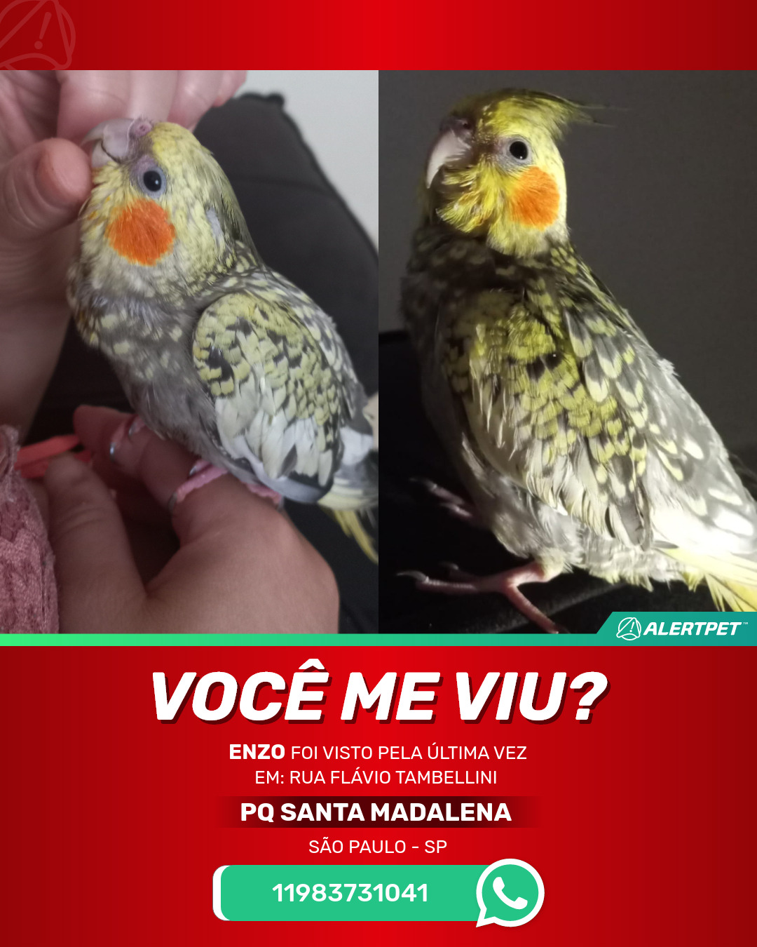 #AlertPet #Procurase #PassaroDesaparecido #SaoPaulo #ProcuramosEnzo