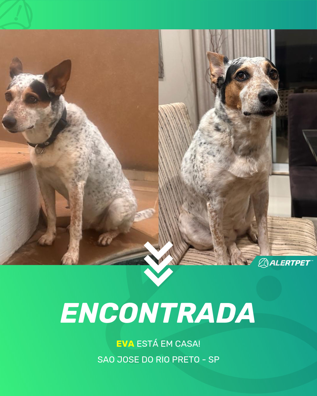 Depois de dois meses a cadelinha foi finalmente localizada graças a um anúncio da AlertPet