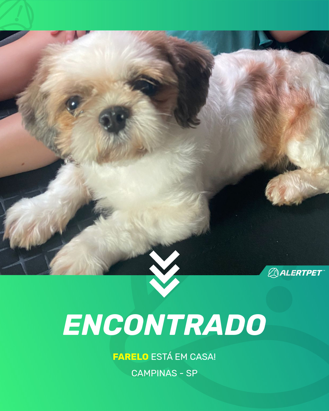 Depois de dois meses a cadelinha foi finalmente localizada graças a um anúncio da AlertPet