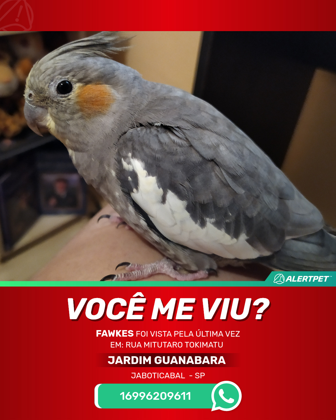 #AlertPet #Procurase #PassaroDesaparecido #Jaboticabal #ProcuramosFawkes