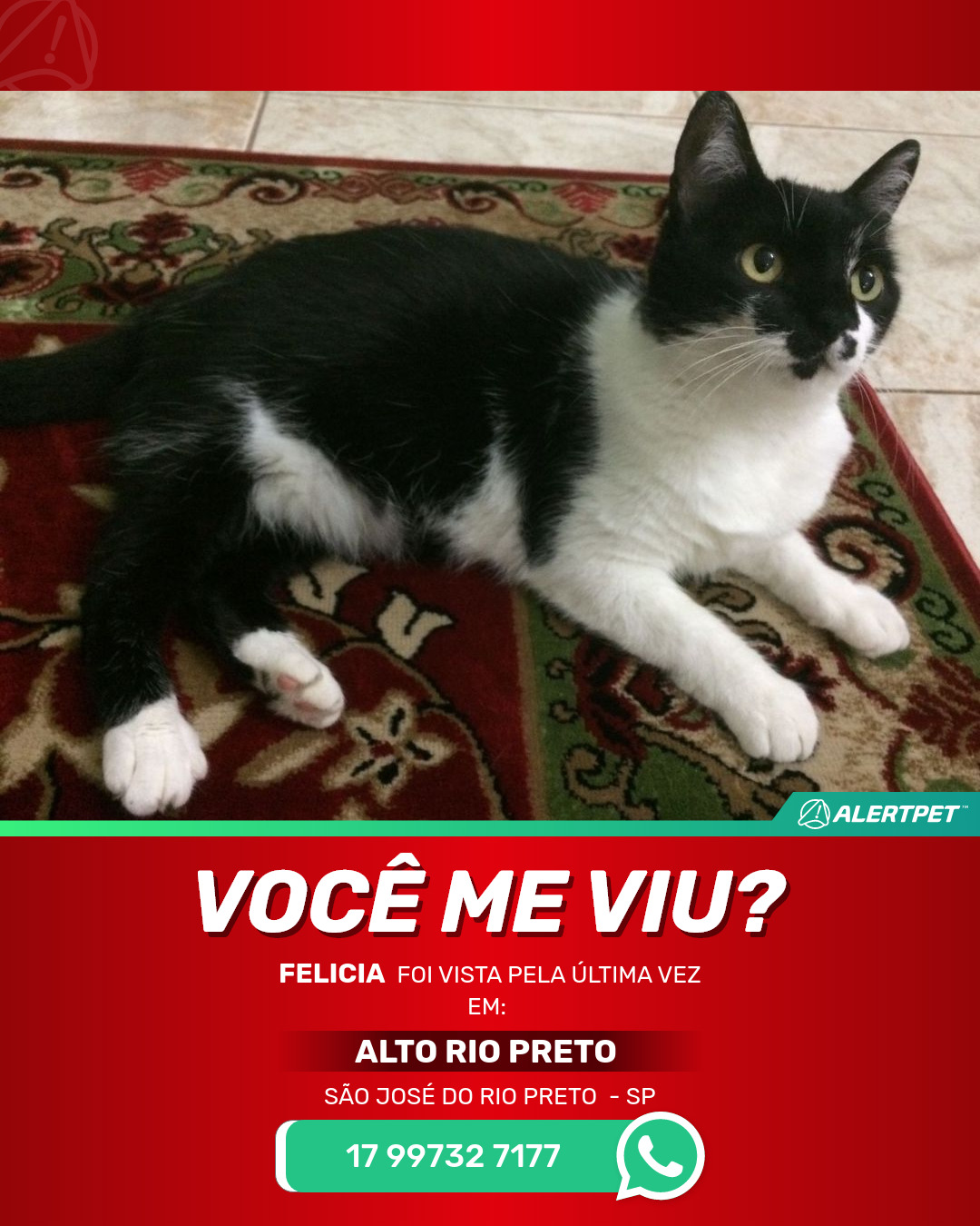 #AlertPet #Procurase #GatoDesaparecido #SaoJoseDoRioPreto #ProcuramosFelicia