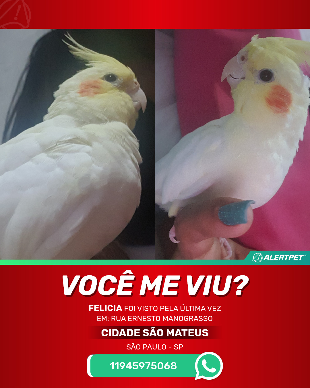 #AlertPet #Procurase #PassaroDesaparecido #SaoPaulo #ProcuramosFelicia