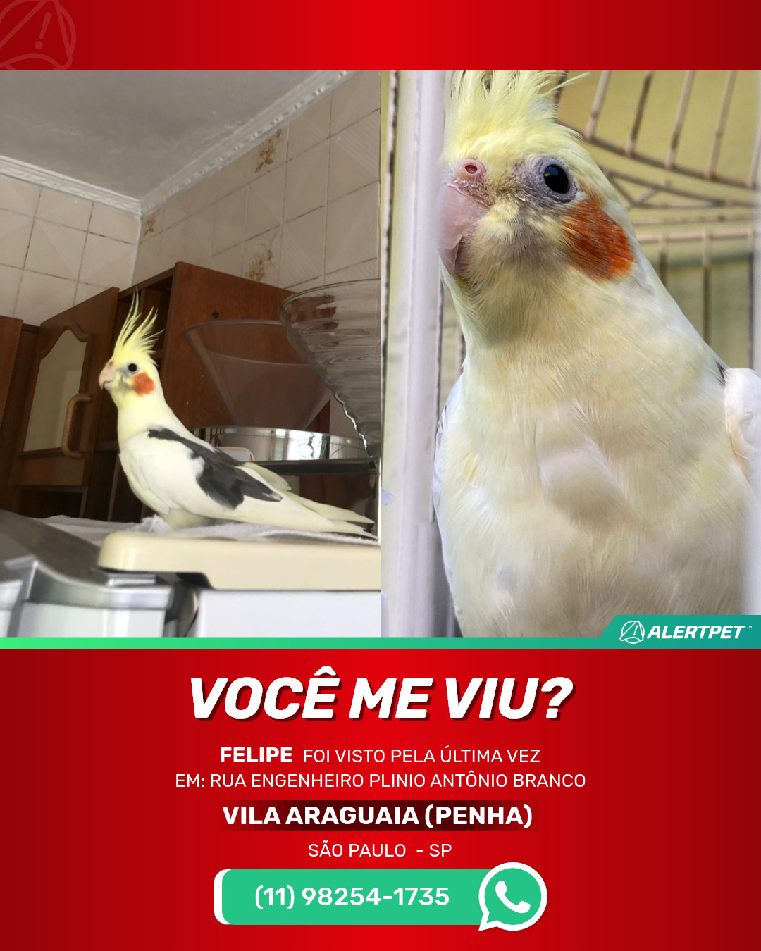 #alertpet #procurase #PássaroDesaparecido #São Paulo #procuramosFelipe