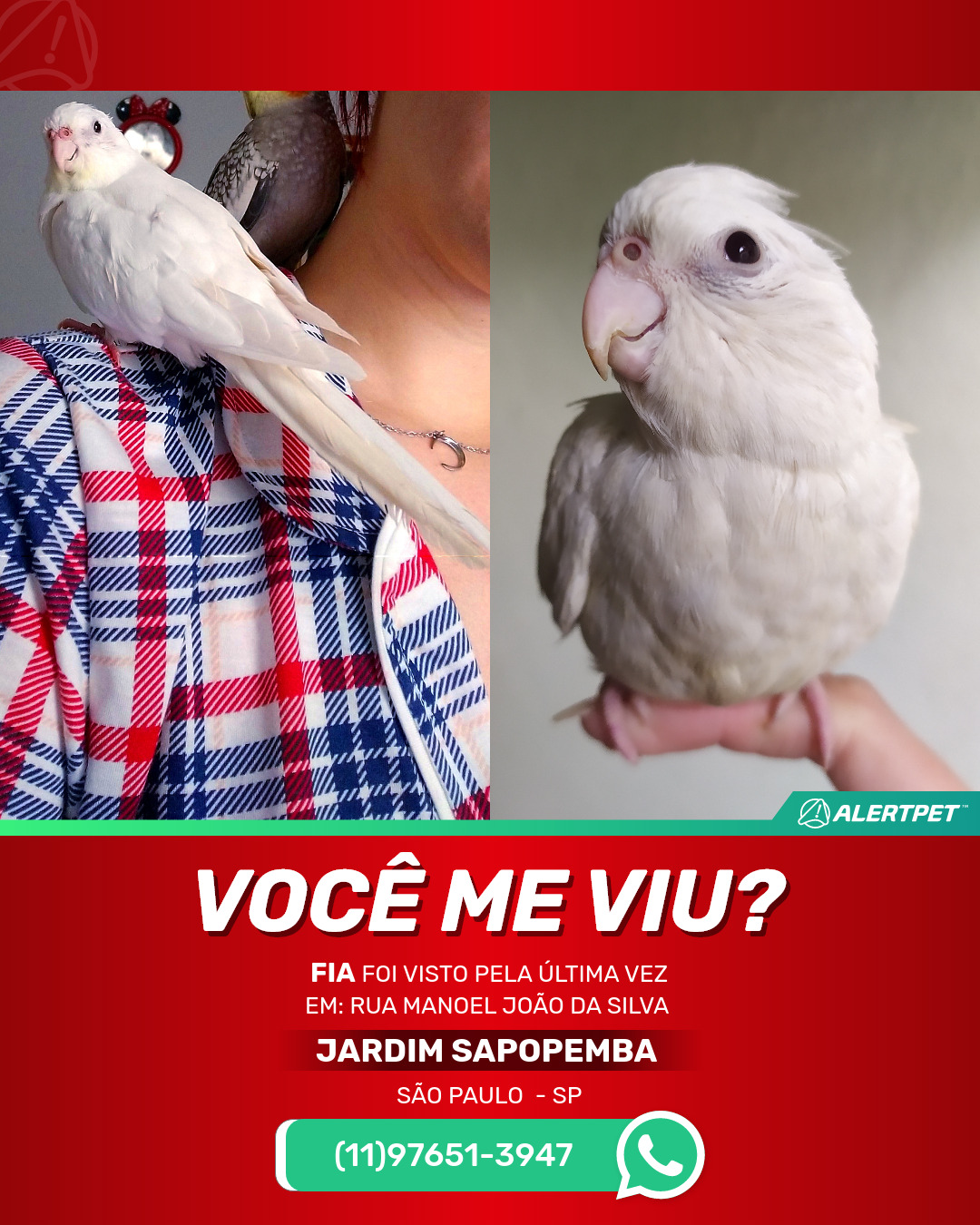 #AlertPet #Procurase #PassaroDesaparecido #SaoPaulo #ProcuramosFia