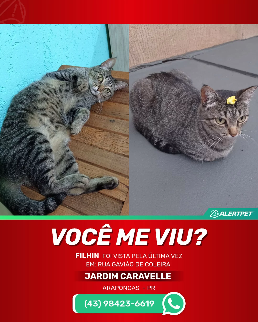 #AlertPet #Procurase #GatoDesaparecido #Arapongas #ProcuramosFilhin
