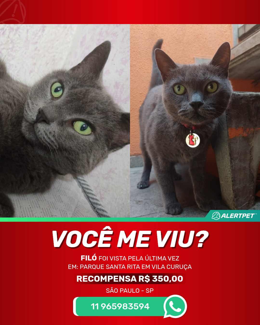 #AlertPet #Procurase #GatoDesaparecido #SaoPaulo #ProcuramosFilo