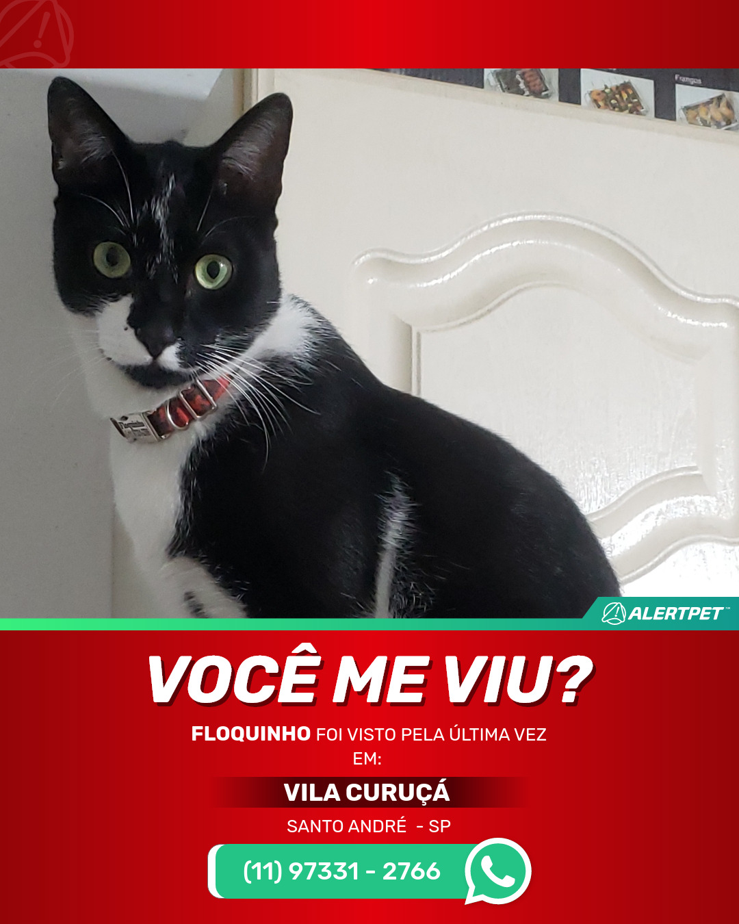 #AlertPet #Procurase #GatoDesaparecido #SantoAndre #ProcuramosFloquinho(atendeComoPequenio)