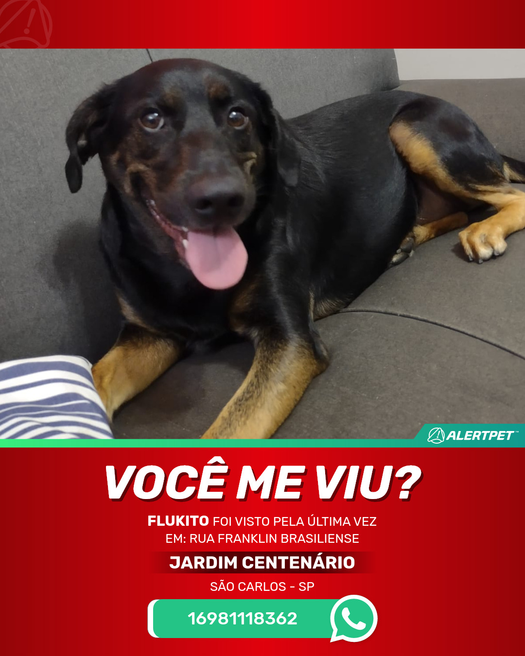 #AlertPet #Procurase #CachorroDesaparecido #SaoCarlos #ProcuramosFlukito