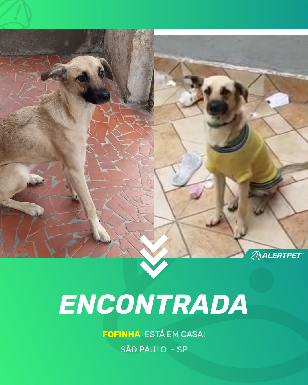 Depois de dois meses a cadelinha foi finalmente localizada graças a um anúncio da AlertPet