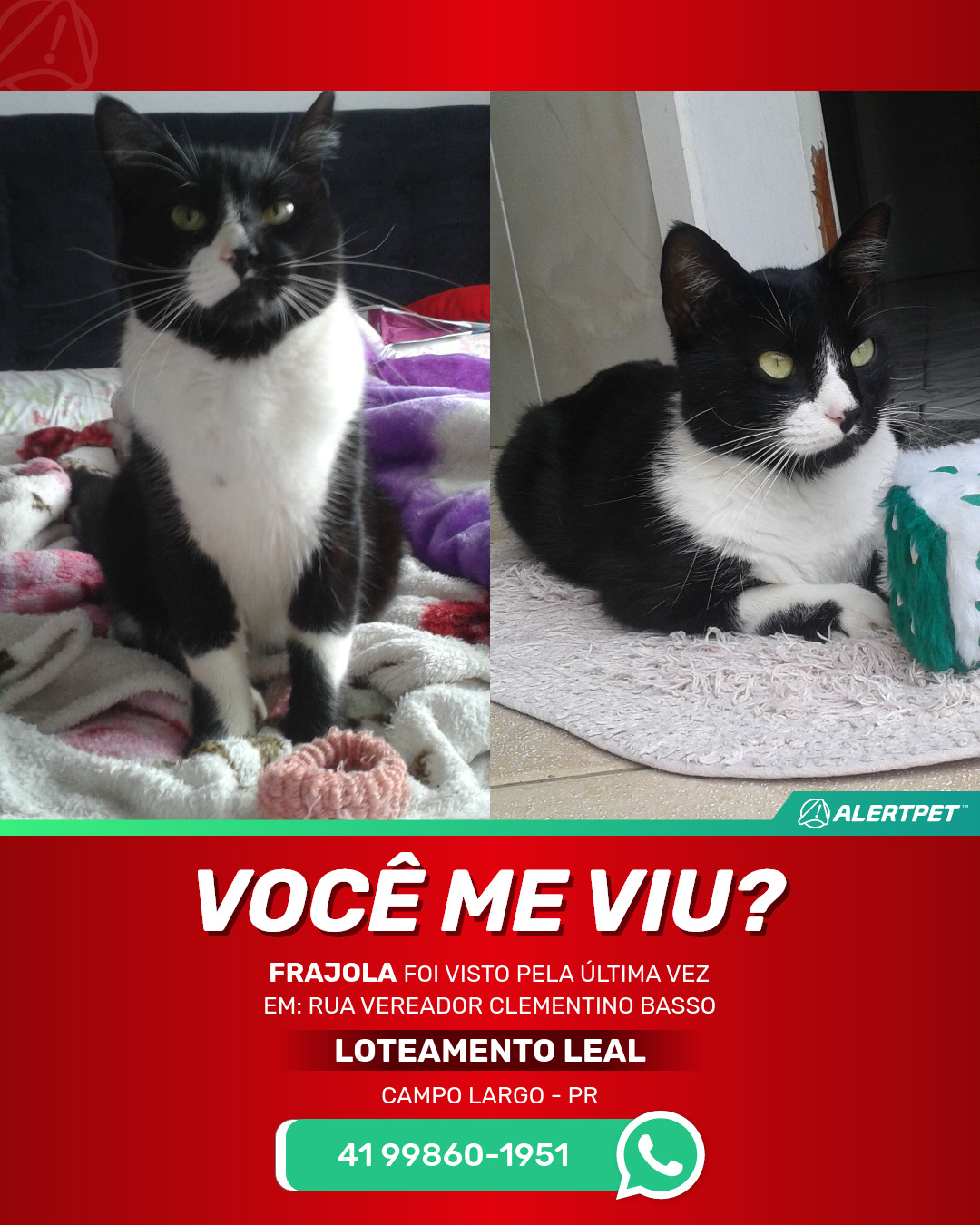#AlertPet #Procurase #GatoDesaparecido #CampoLargo #ProcuramosFrajola