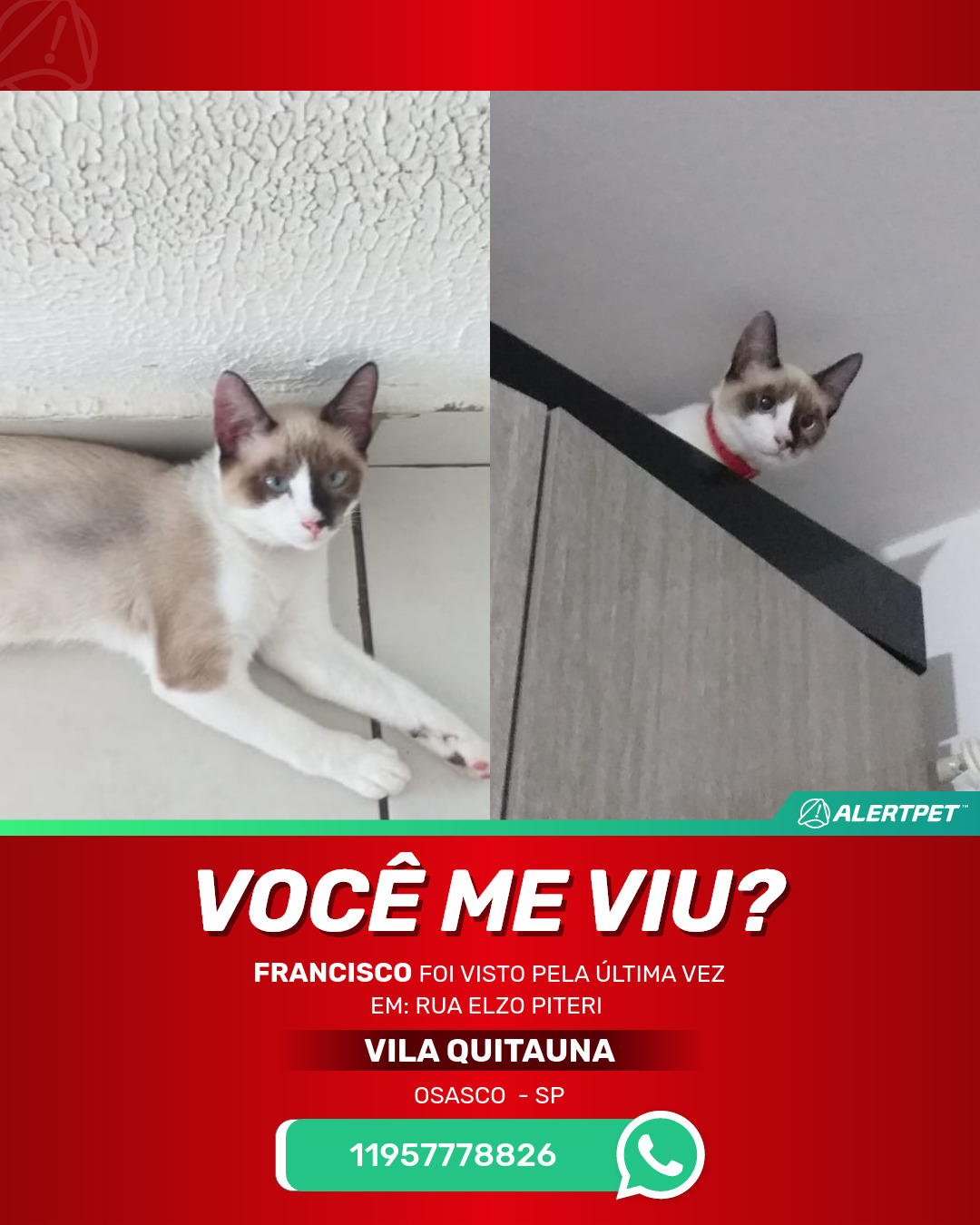 #AlertPet #Procurase #GatoDesaparecido #Osasco #ProcuramosFrancisco