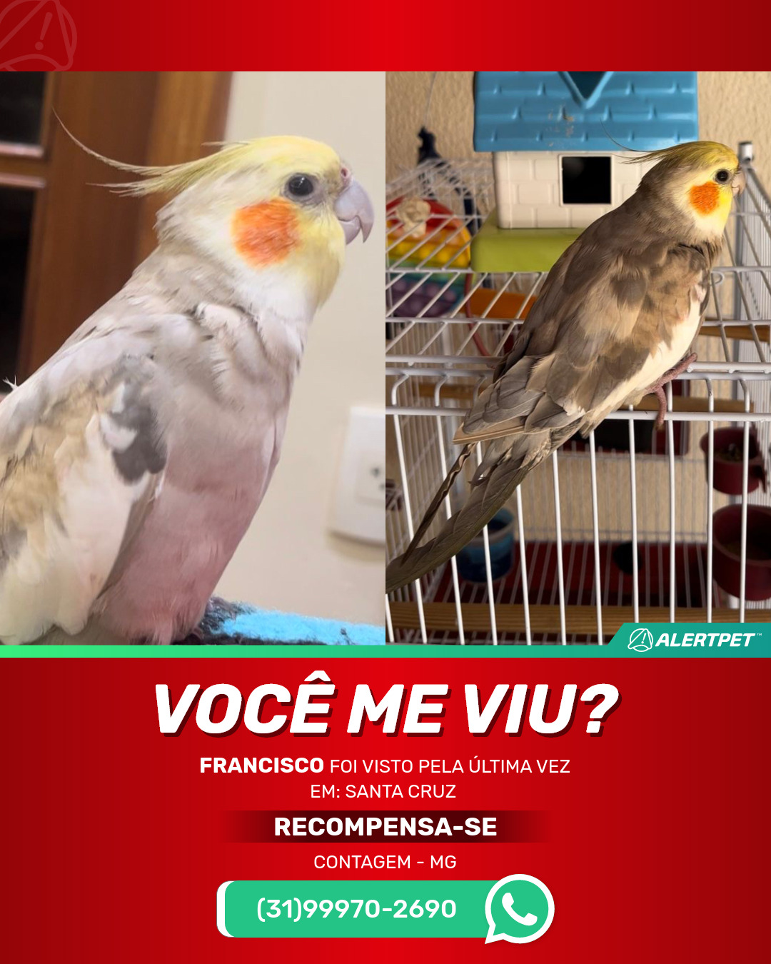 #AlertPet #Procurase #PassaroDesaparecido #Contagem #ProcuramosFrancisco