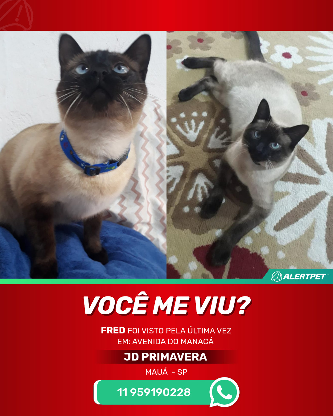#alertpet #procurase #GatoDesaparecido #Mauá #procuramosFred