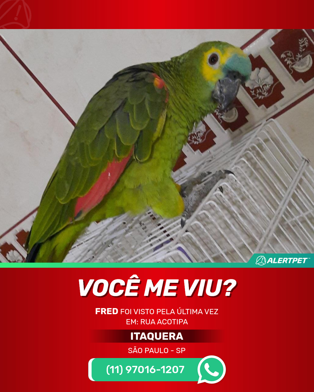 #alertpet #procurase #PássaroDesaparecido #São Paulo #procuramosFred